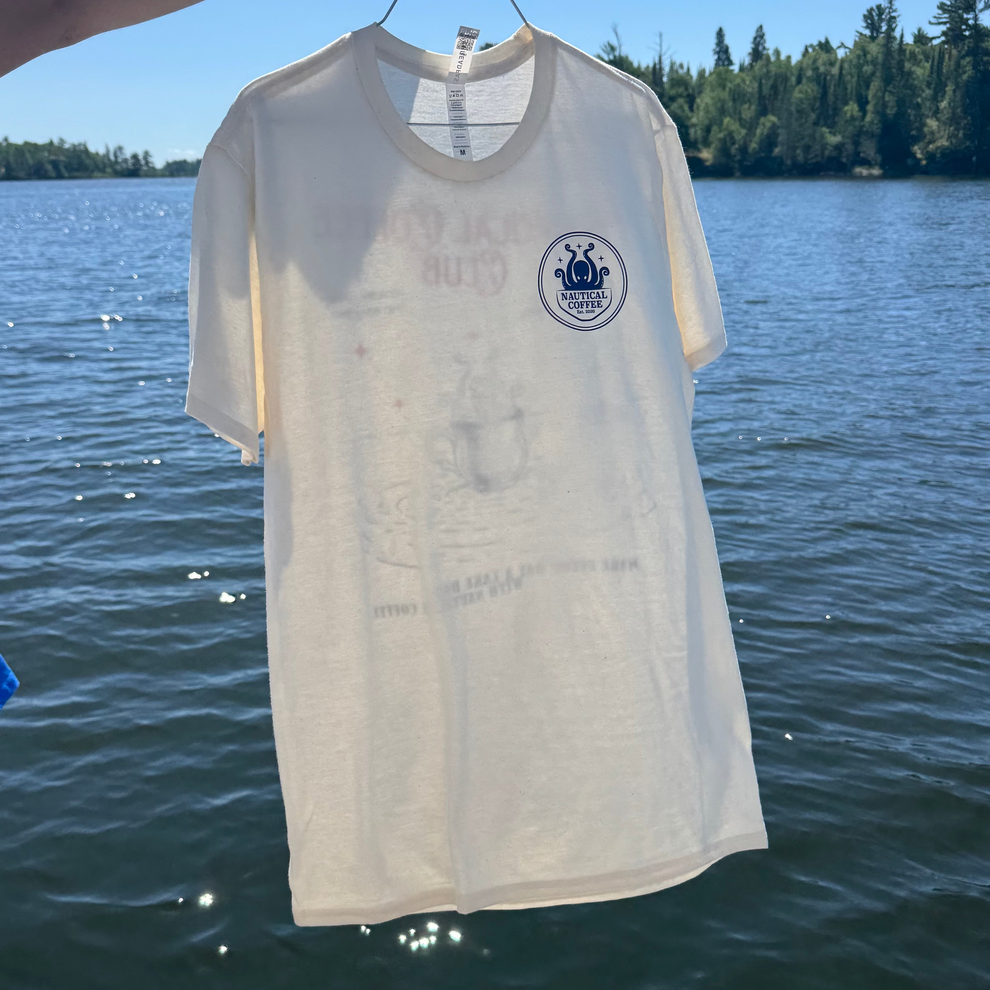 We collaborated with a local up-and-coming artist, Isabelle Henderson, to design this one-of-a-kind T. This T has a vintage feel that takes you right back to your favourite summer evenings spent on the lake. Join the Nautical Coffee Club!