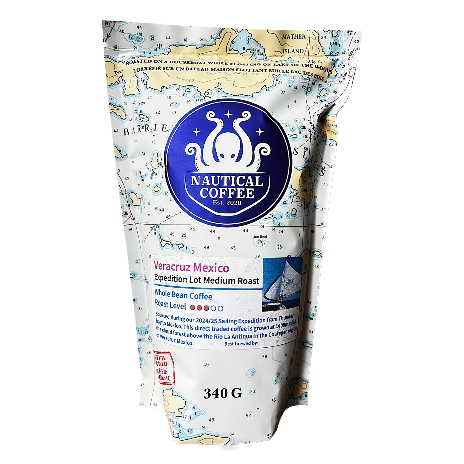 Sourced during our 2024/2025 sailing expedition from Thunder Bay, Ontario, to Mexico. This direct-traded coffee is grown at 1400 MASL in the cloud forest above the Río La Antigua in the Coatepec region of Veracruz, Mexico.